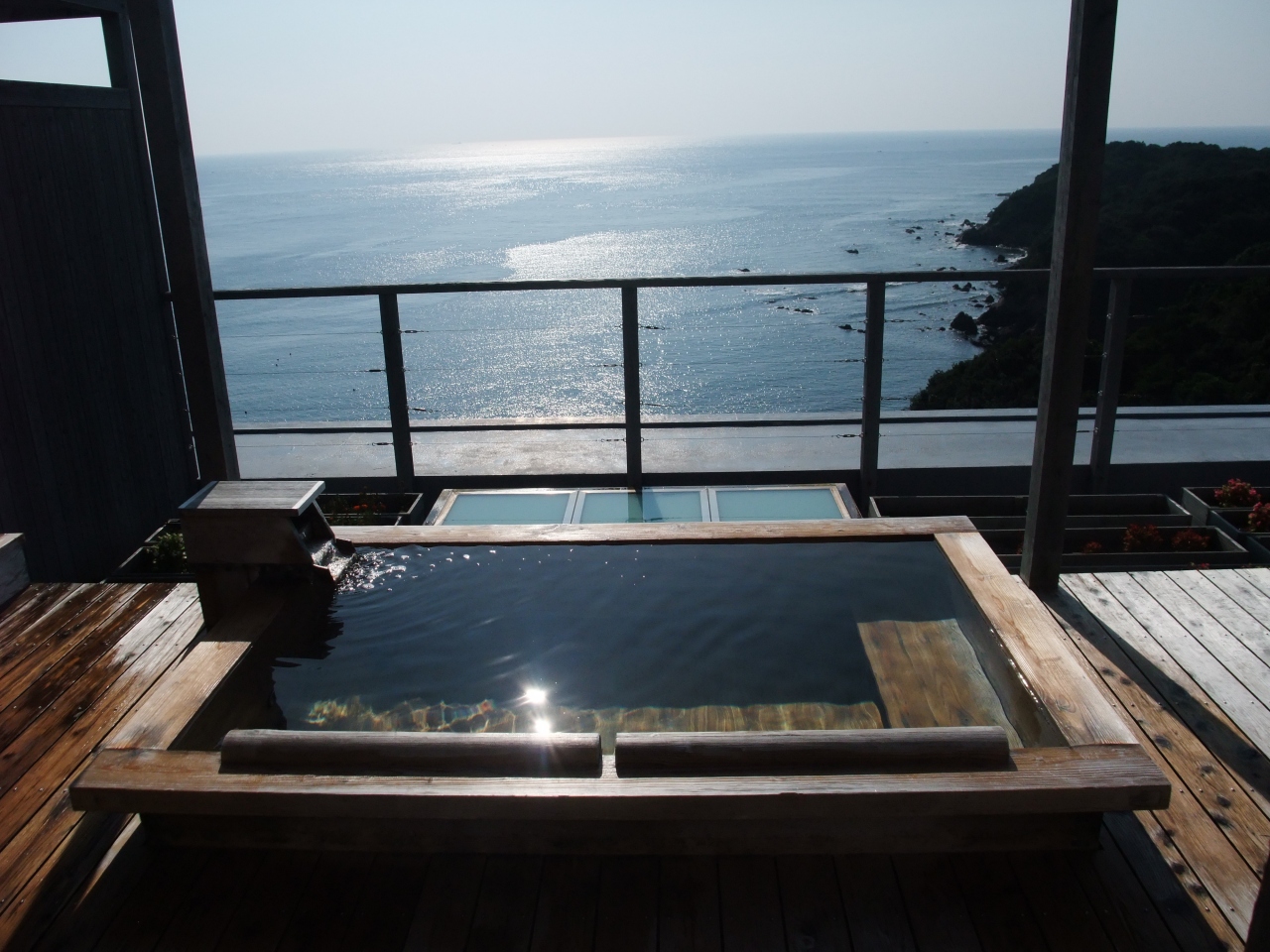 夏休みに温泉に行きたいと思い、ネットでこちらを見つけました。駅から送迎バスがでているので、それを利用したのですが、山道で途中かなり急な坂があり、着くまで不安でしたが、到着すると不安も無くなるほど素敵な旅館でした。室内も改装してあって綺麗になっていました。貸切露天が最高で、海を見ながらお風呂に入れます。料理は新鮮な魚が使われていて、特にお造りが美味しかったです。総合してこのお値段はお得だなと思いましたし、また利用したいと思える旅館でした。
