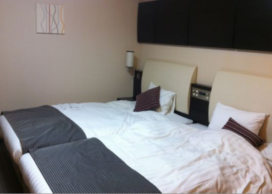 JR川崎駅東口より徒歩約5分。地下経由ならアゼリア(地下街)37番出口から直進約1分。地上なら、東口を出て大通りを渡り右折、最初の信号の十字路を(渡らずに)左折して、37番街のアーケードが切れる手前。入口は広くありませんが一階にあるファミマが目印。受付はエレベータで2階に。ツインルームが希望だったので、ハリウッドツインを予約。26平米と広々としたお部屋でした。内装は白に落ち着いたウッディーなコントラストのあるモダンな雰囲気、加湿機能付きの空気清浄機も設置され、快適に過ごせました。チェックアウトも自動精算機(両替機能付き)でスムーズでした。