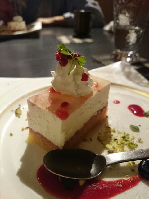 豪華な夕食に気を取られがちですが、お腹いっぱいになった頃にやってくるデザートも絶品でした。フランポアーズのレアチーズケーキを選びましたが、家族の食べていた抹茶葛プリンも美味しそうだったです。