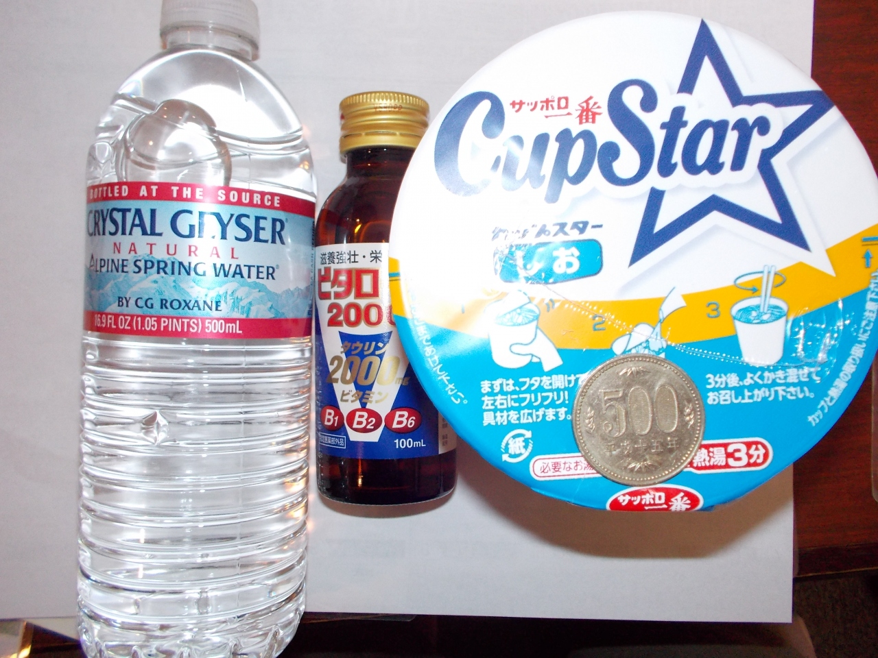 ホテルに着き、チェックインし、部屋でくつろいでいると、フロントから電話があり、渡し忘れたものがあると。そーですよね、ミネラルウォーター、カップ麺、栄養ドリンク付きのプランですもんね。