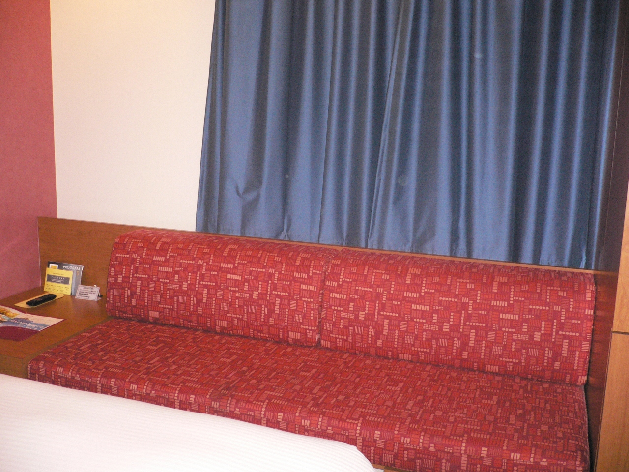 部屋は狭く、特にカーテンの安っぽさが際立っていました。