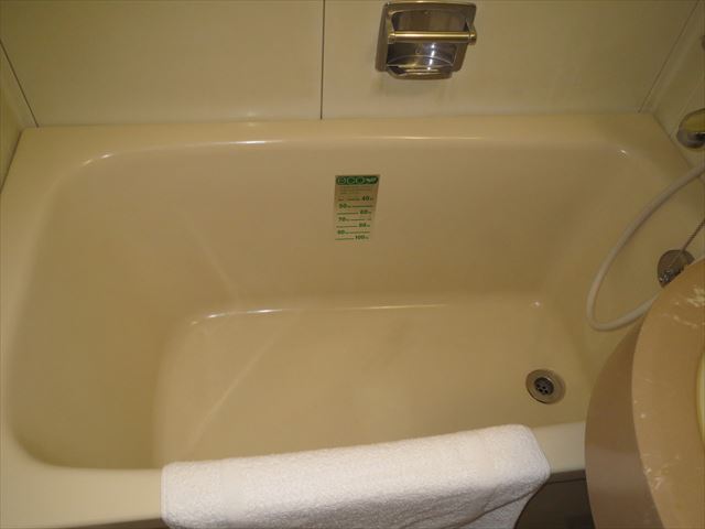 バスタブの大きさは普通です.バスタブに排水口がないので,うっかりすると浴室が水浸しになってしまいます(要注意).