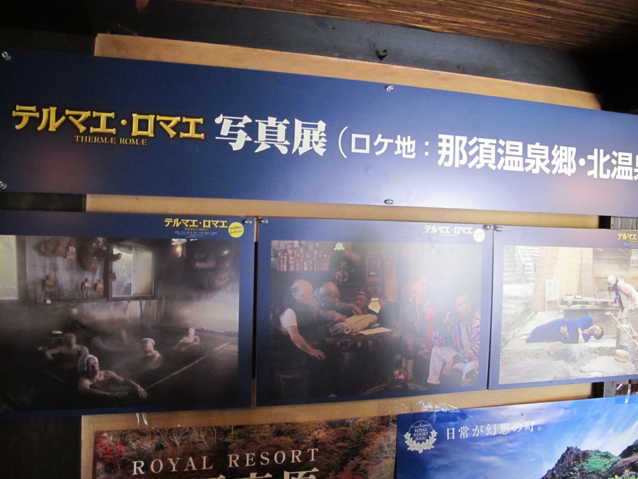 受付のところに実際にこの温泉が出てきたテルマエロマエのシーンが載っている大きなパネルがあります。映画ファンにオススメです。