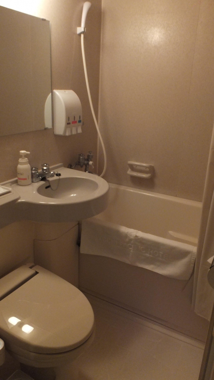 バスルーム・バスタブはやや狭いが、シャワーもそこそこに寝るだけなら全く問題ないです。