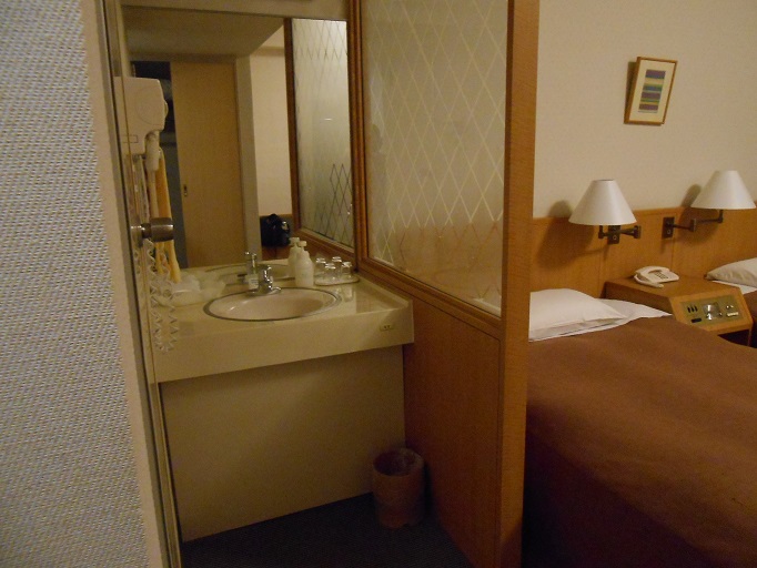 そこそこ広いのだが、洗面台がバスルームの外にありなんとも不思議な感じのする部屋だった。