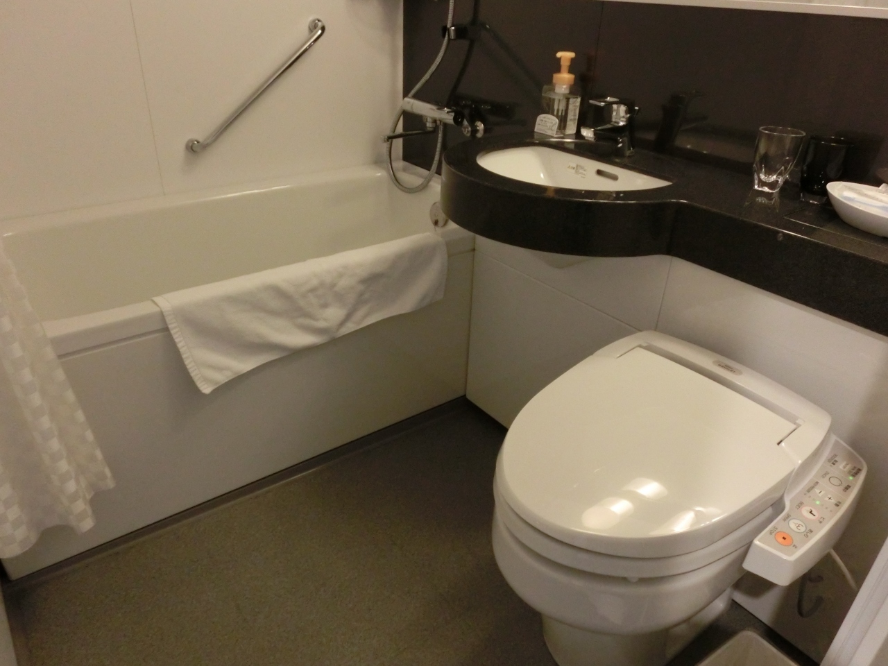 JR津田沼駅直結で立地は最高です。フロントは6階で客室階に行くにはカードキーが無いと行けません。部屋はシングルとは思えないくらいの十分な広さでした。バスタブも大きい。レンタルPCを借りましたが結局ネットにはつながらず。テレビの横のLANケーブルを機器に刺すと書いてありましたがLANケーブルは見当たりませんでした。ここらへんは説明書が不親切だと思います。7階にコインランドリーがありますがドラム式で洗濯~乾燥までイッキにできるので楽ですね~。