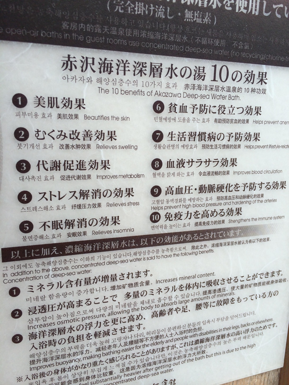 海洋深層水のお湯で、とてもあったまります。顔に当たるとピリピリするほど、しょっぱい