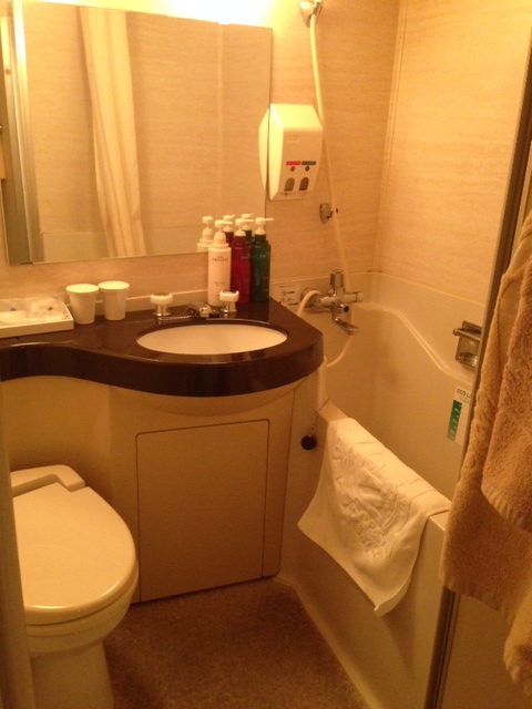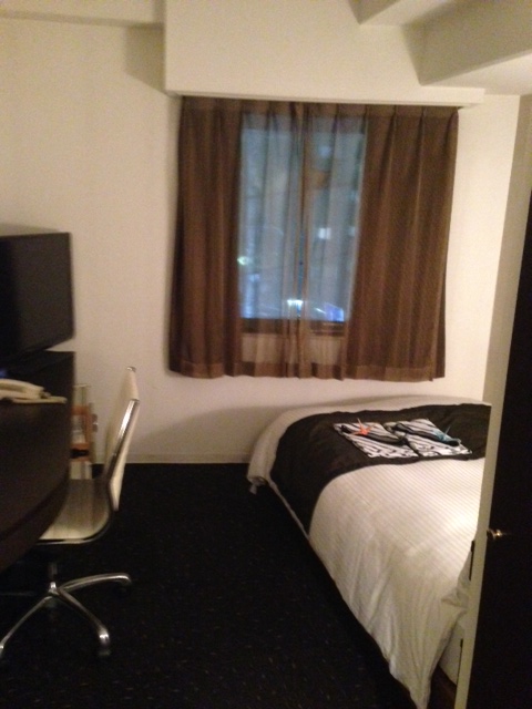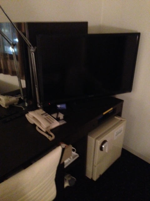 部屋は内装はモノトーンで改装してあるようですが、全体的に設備が古く照明も少なく暗い感じ。テレビは液晶の大きなタイプでまずまずで、インターネットもWIFIが無料で利用可能です。