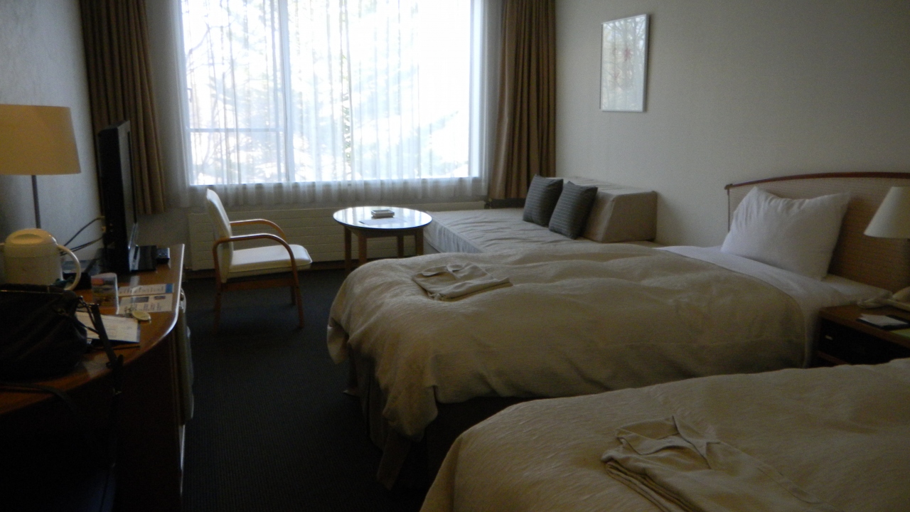 山の斜面に建っていますので、どの部屋も眺望は良いようです。部屋もベッドも広く快適です。冷蔵庫に天狗水(てんごんすい)というここの水を冷やしてあり、とても美味しい水でびっくりしました。ちょっとしたサービスですが嬉しいです。