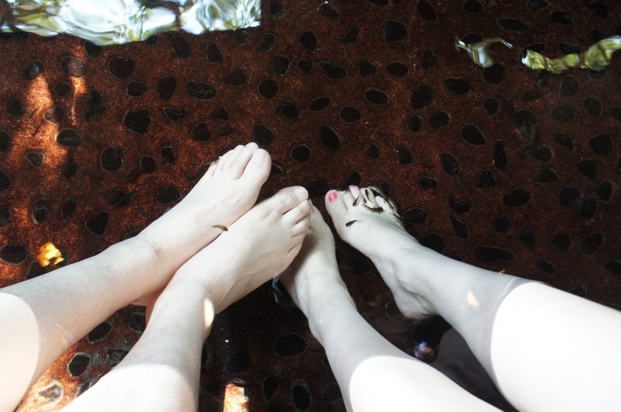 旅館の入口には足湯があり、ドクターフィッシュがいました。