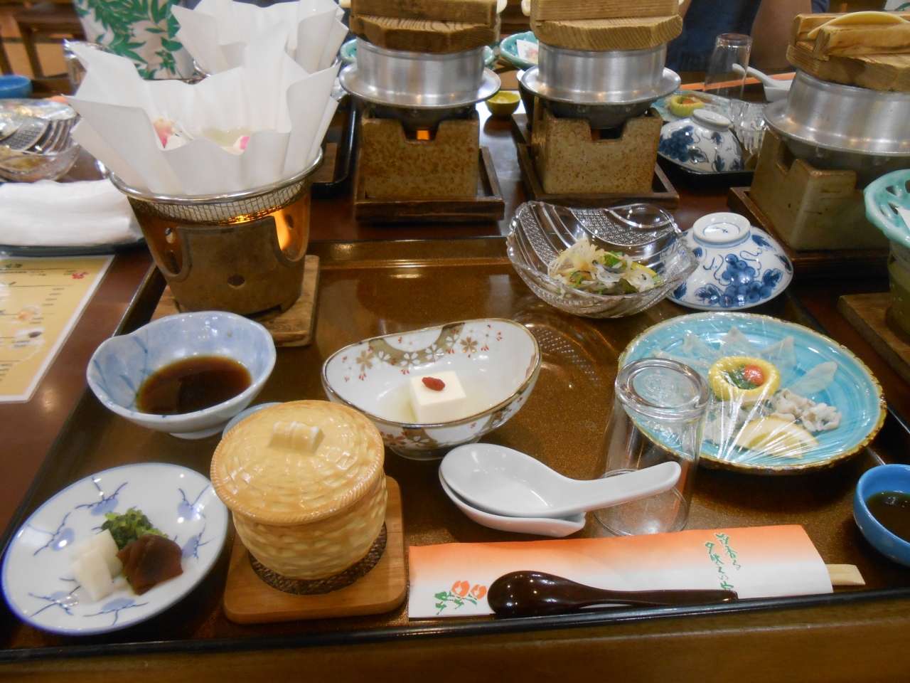 夕食はふぐを使った和食で、味はとくに特筆するものはなかったですが、朝食バイキングは思ったよりメニューが豊富でこちれは予算の割においしかったです。