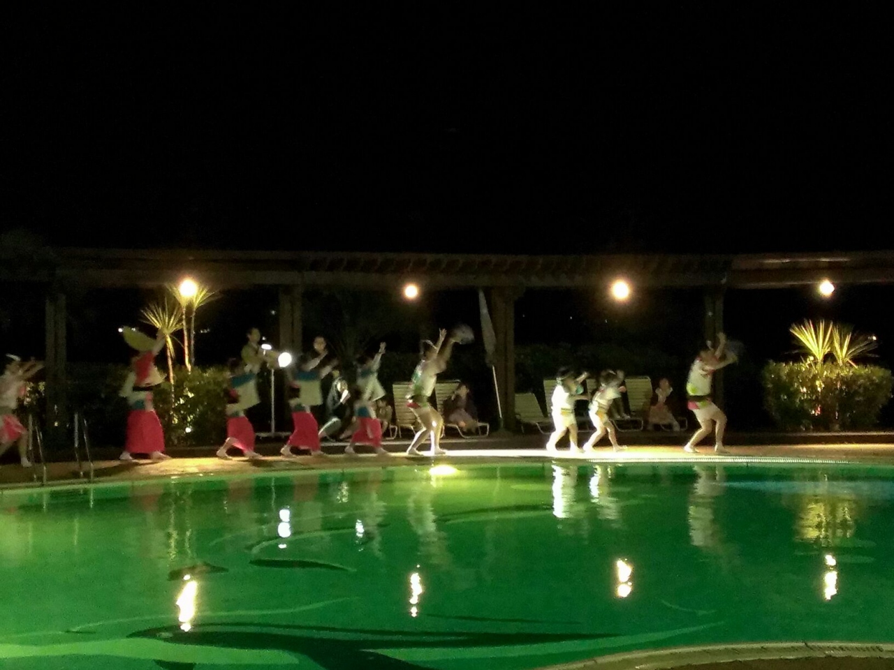 1泊2食で安いプランだったので、夕食は期待しなかったけれど、たくさんある中から選べて意外と良かった。ホテルの部屋は広くてゆったり。でも、景色は、、、、海が綺麗じゃないので、微妙。ホテルの顏のロビーが小さくチェックアウトを待つ家族連れが座る場所がないほど。家庭画報に載るほどのホテルだけれど、雑誌で見たところはごく一部のか所を切り取ったところだった。総じてファミリー向けの海沿いのホテルといったところ。プールでは阿波踊りが披露されていてこれが良かった。