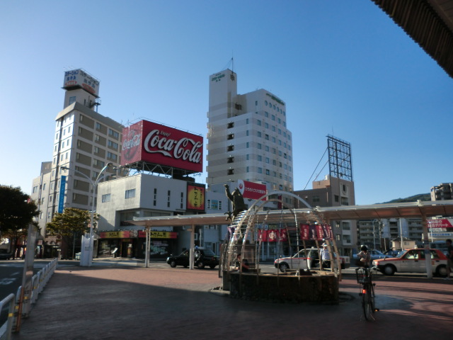 フェリーとのパックで利用しました。駅前の1つ前のバス停で降りたら逆に入り口を見逃してしまい、駅まで行って折り返しました。駅前のロータリーから屋上の看板を見たら距離感がつかめたのですが。午前中に到着したのでフロントで荷物を預かってもらいました。