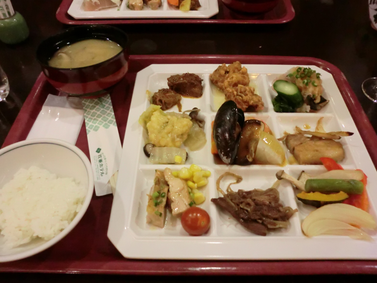 食事はバイキングで、朝食は結構楽しめましたが夕食がバイキングなのは少々がっかりでした。お皿も給食みたいなプラスチックプレートです。