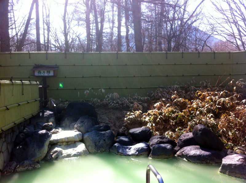 部屋にはバスがついていましたが、日光湯元からパイプで直接お湯を引いた源泉かけ流しの露天風呂があり、偶然だったのかもしれませんが、私が入湯したときには空いていたので、ゆっくりとくつろぐことができました。