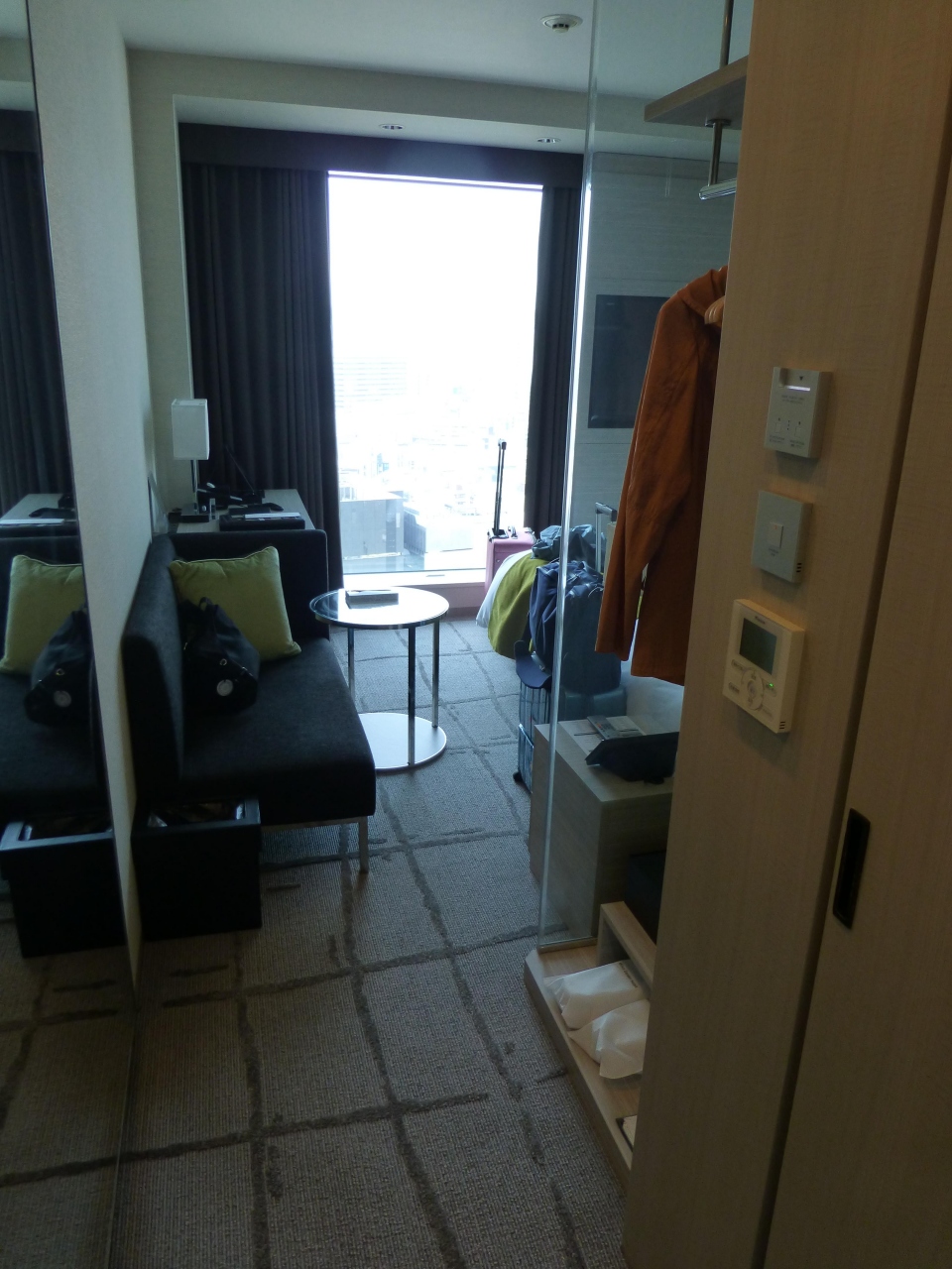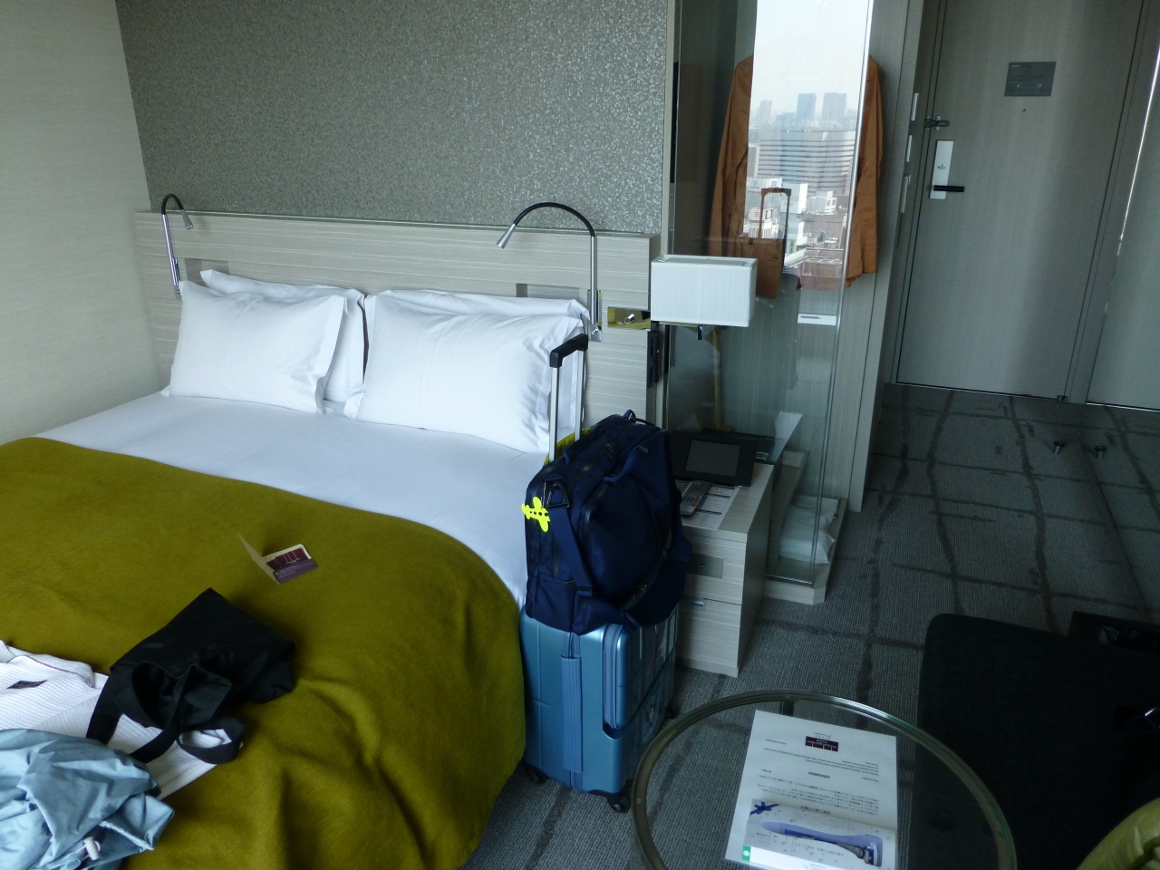 銀座近くのホテルということで泊まってみました.ただし,新橋駅から少し歩きます.地下鉄銀座線の新橋駅から出るとわかりやすいようです.16階のフロント階にエレベーターで着くと東京タワーなどの景色が広がります.泊まったのはビューバスダブルという部屋で浴室からスカイツリーが見えます.また,部屋からは有楽町・皇居・武道館・国会議事堂などが見えました.ただし,部屋は狭めで収納は少なめで冬や多泊するときは厳しそうです.また,浴槽も大きいとは言えないのと窓は曇ってしまうので,入浴しながらゆっくりと夜景を楽しむというのは難しそうでした.なお,朝食は16階のレストランでビュッフェ形式です.ローストビーフや蒸し鶏など朝食にしてはお肉料理が充実していました.パンは種類が少なめでチーズはありませんでした.ミニエクレアやティラミス・パンナコッタなどのスイーツも朝食なのにたくさんありました.近くに24時間営業のドン・キホーテがあります.部屋の広さと駅からの距離ではあまり魅力はありませんでした.