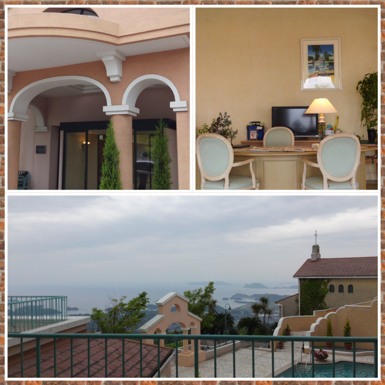 ホテル内は、ロビー階が一番上で、客室は、下にあります。お風呂は、温泉で、こじんまりとしていますが、疲れた身体にはありがたかった~。客室、お風呂からの景色もとてもよかったです。