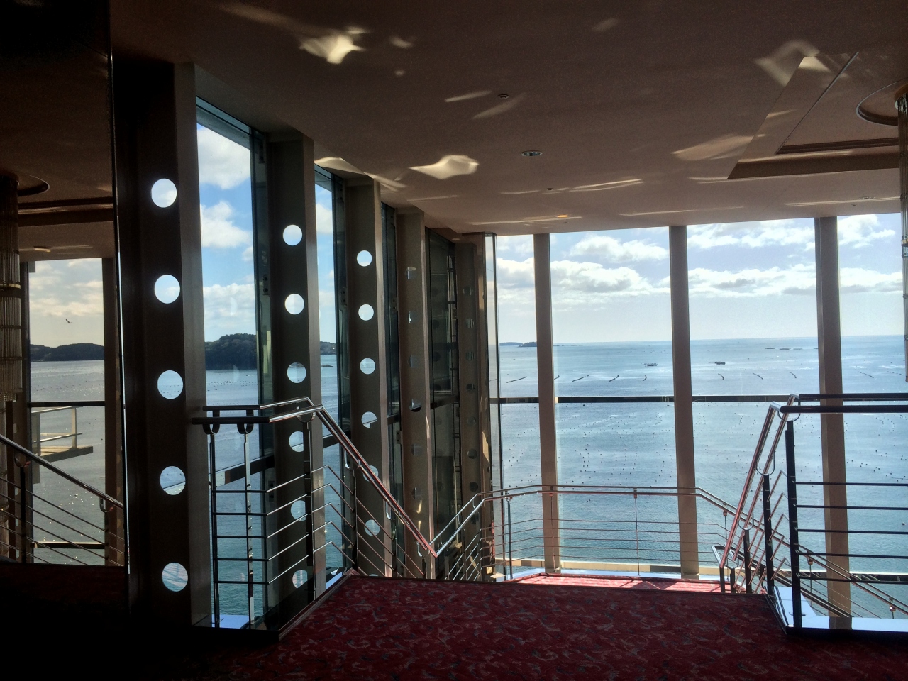 海岸縁の岩場に立つ立派なホテルです。全室オーシャンビューで、窓からは海が180度広がる絶景が拝めます。本業が水産業というだけあって、お食事の海産物も新鮮でおいしかったです。