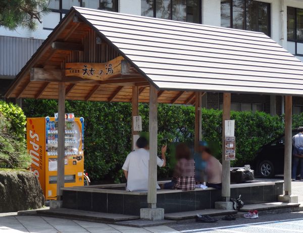 玄関横に無料の足湯があり、誰でも楽しむことができます。