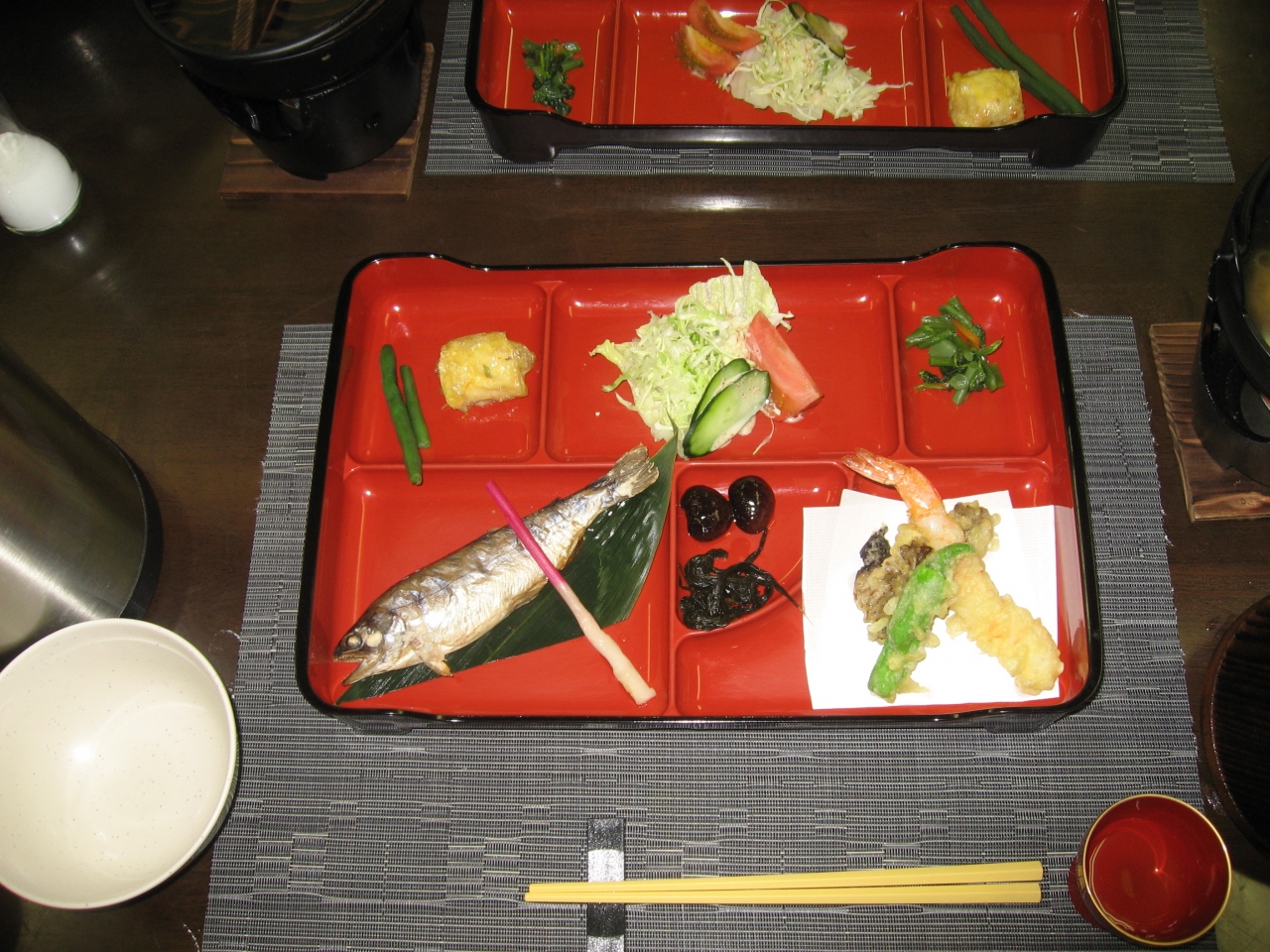 食事は、日によって、特別料理、山菜の天ぷらやイワナの刺身を頼めることがある。