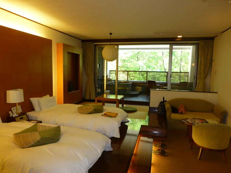 露天風呂付客室は 写真で見ていたより広く ソファーセットの他にベッドの横に畳コーナーもあり ゆっくりできました。