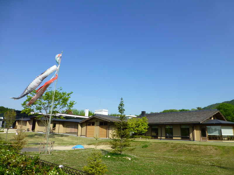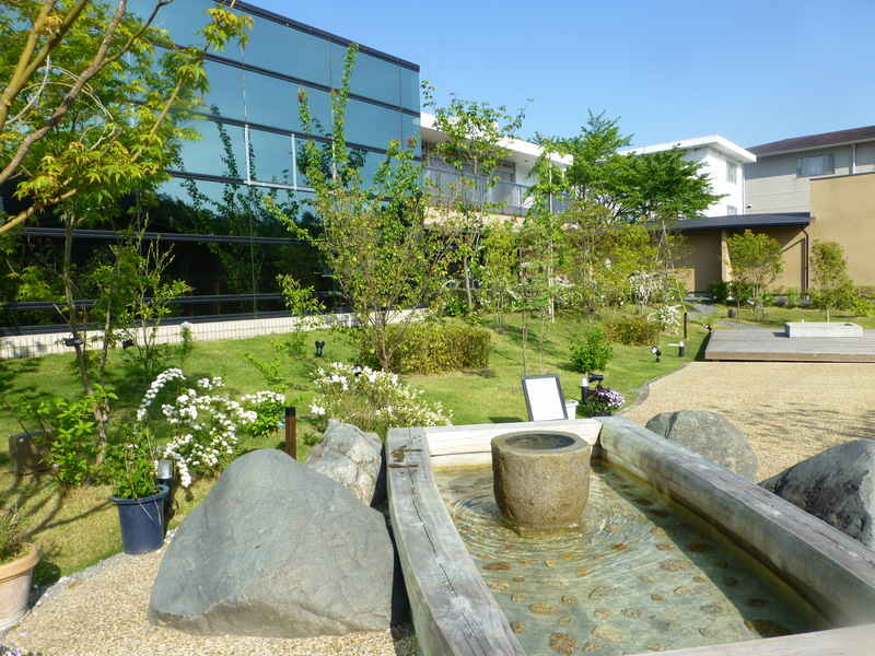 広いテラスには信楽焼きの大きな露天風呂。前は新緑の山で 鶯の鳴き声をききながら