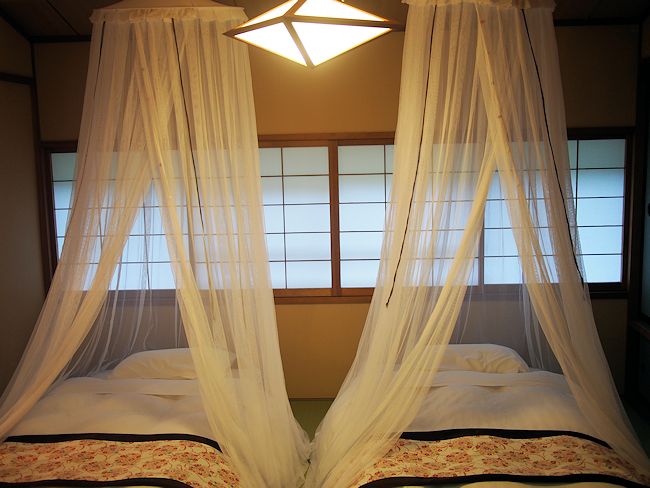 夕食後は ホールで竹灯りの中 CDコンサートがあり、ワインのサービスがありました。
