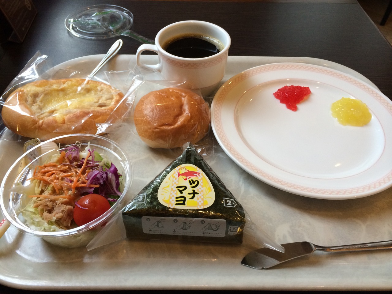 朝食は簡易なバイキングになっています。袋に入ったパンやおにぎり、パック詰めされたサラダなどが置いてありますが、十分満足できました。味噌汁サーバーやゆで卵、ブルーシールのアイスもあり、意外と充実していました。