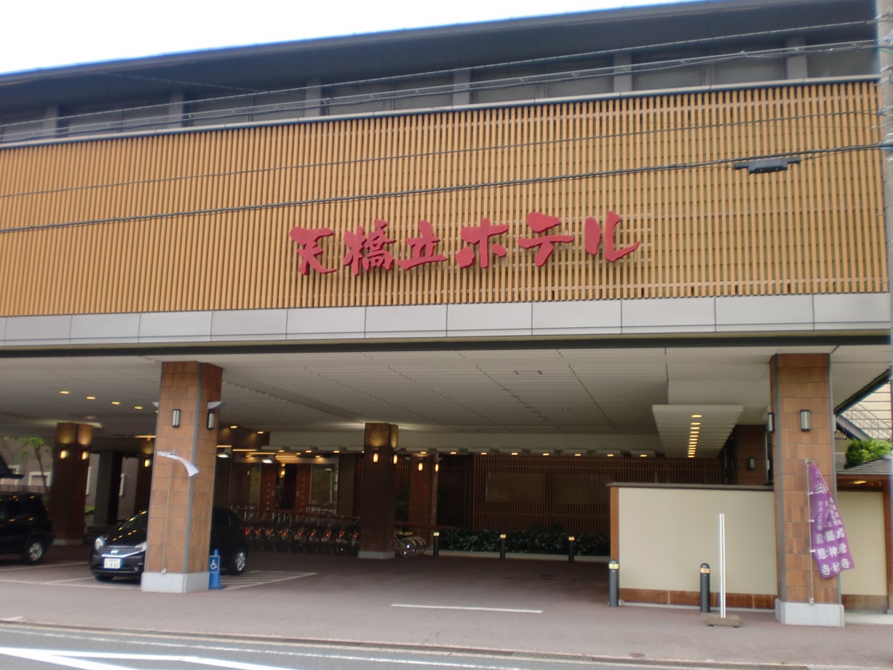 天橋立に行きたかったので、声さえ掛けるとホテル入口の屋根付きスペースに駐車させてもらうことが出来ました。