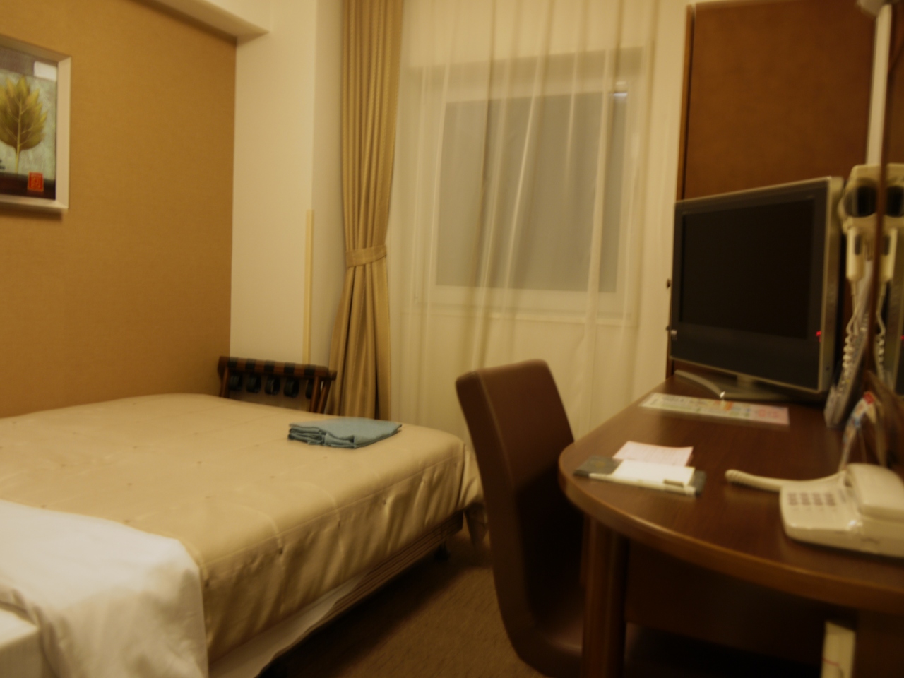 部屋は狭いけど、使い捨てのスリッパや室内着、空気清浄機なども完備されていました。また、部屋にはバスタブもありますが、最上階(14階)にはカードキーが無ければ入ることが出来ない展望大浴場があります。大浴場といっても洗い場は6ヶ所ほどしかありませんでしたが、1ヶ所ずつ区切られているので落ち着いて利用することができました。