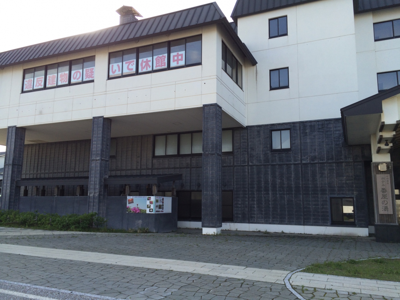 現在、ホテルは違法建築の疑いで休業中です。でも、通りを挟んで反対側にある日帰り施設は利用できます。