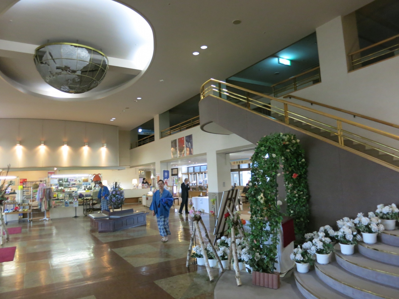 ホテルの1階は羽幌の道の駅も兼ねていますが、ほとんどホテルのロビーの雰囲気です。羽幌のお土産が売られており、また、一応は道の駅らしく道路情報の端末がありました。更に1階にはホテルの大浴場(温泉)があり、日帰り温泉としても営業しています。日帰りは10時~22時のようですから、夜は25時まで、朝の5時30分から8時までは宿泊者専用の時間となります。