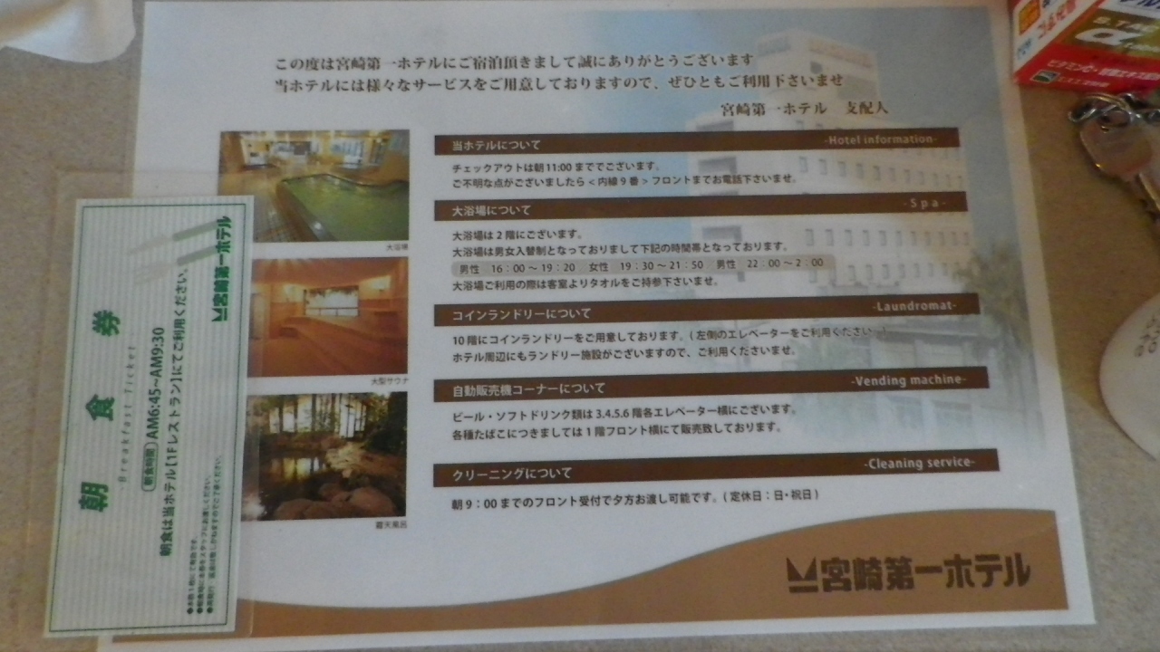 大分より宮崎観光の際に利用しました。一泊朝食付きで二人で5000円以下とゆうコスパだったので決まました。