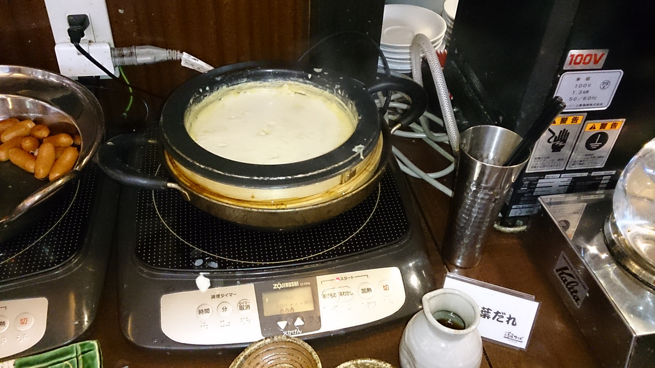 朝食バイキングは品数が少なめ。湯葉があったのは珍しかったです。
