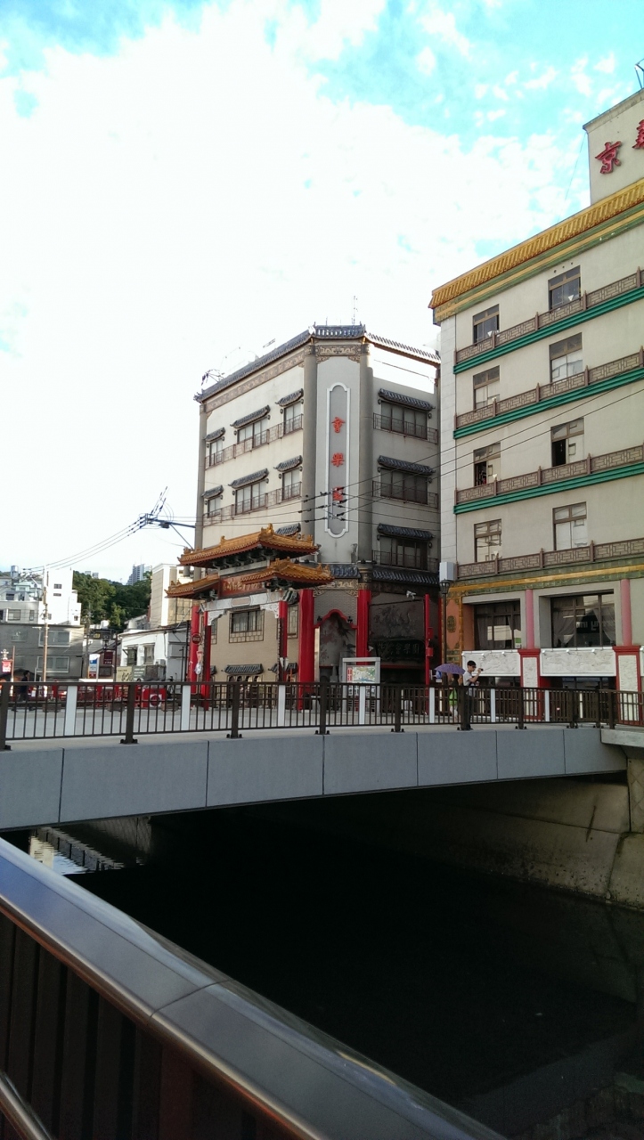 バスターミナルから歩いてすぐ、ホテルまで歩く間に川越しに中華街が見えます