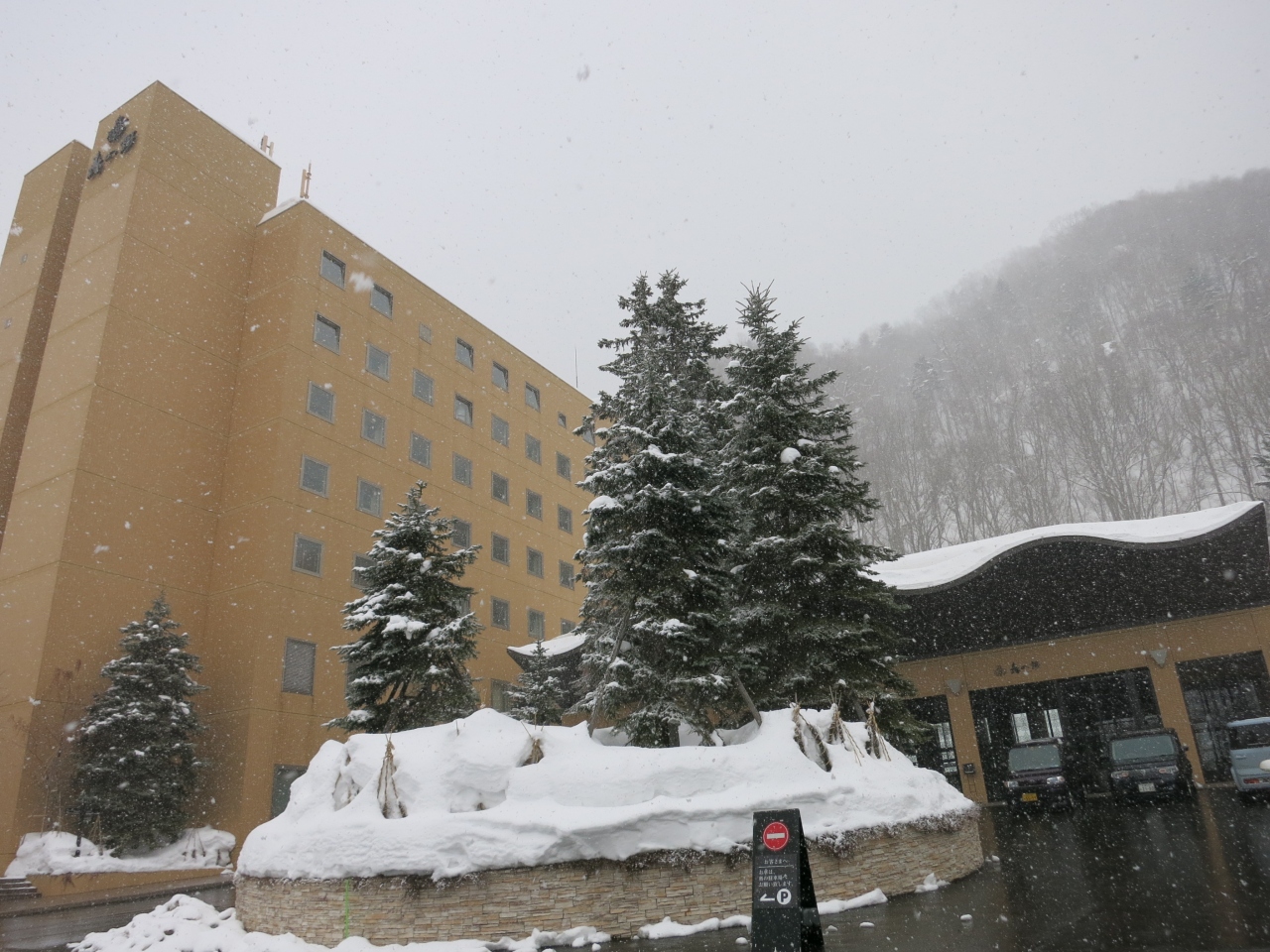 定山渓温泉では、渓谷沿いに建ち、定山渓のきれいな渓谷美を部屋などから見渡せるホテルが多いですが、ここ、森の謌では違います。ホテルは国道230号線から少し登った山側に建ち、せっかく定山渓に来たのに渓谷鑑賞という訳にはいきません。