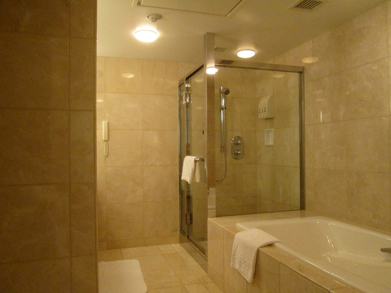 - トイレと別になったバスルームには大きめのバスタブ、シャワーブースもあって、なかなかです