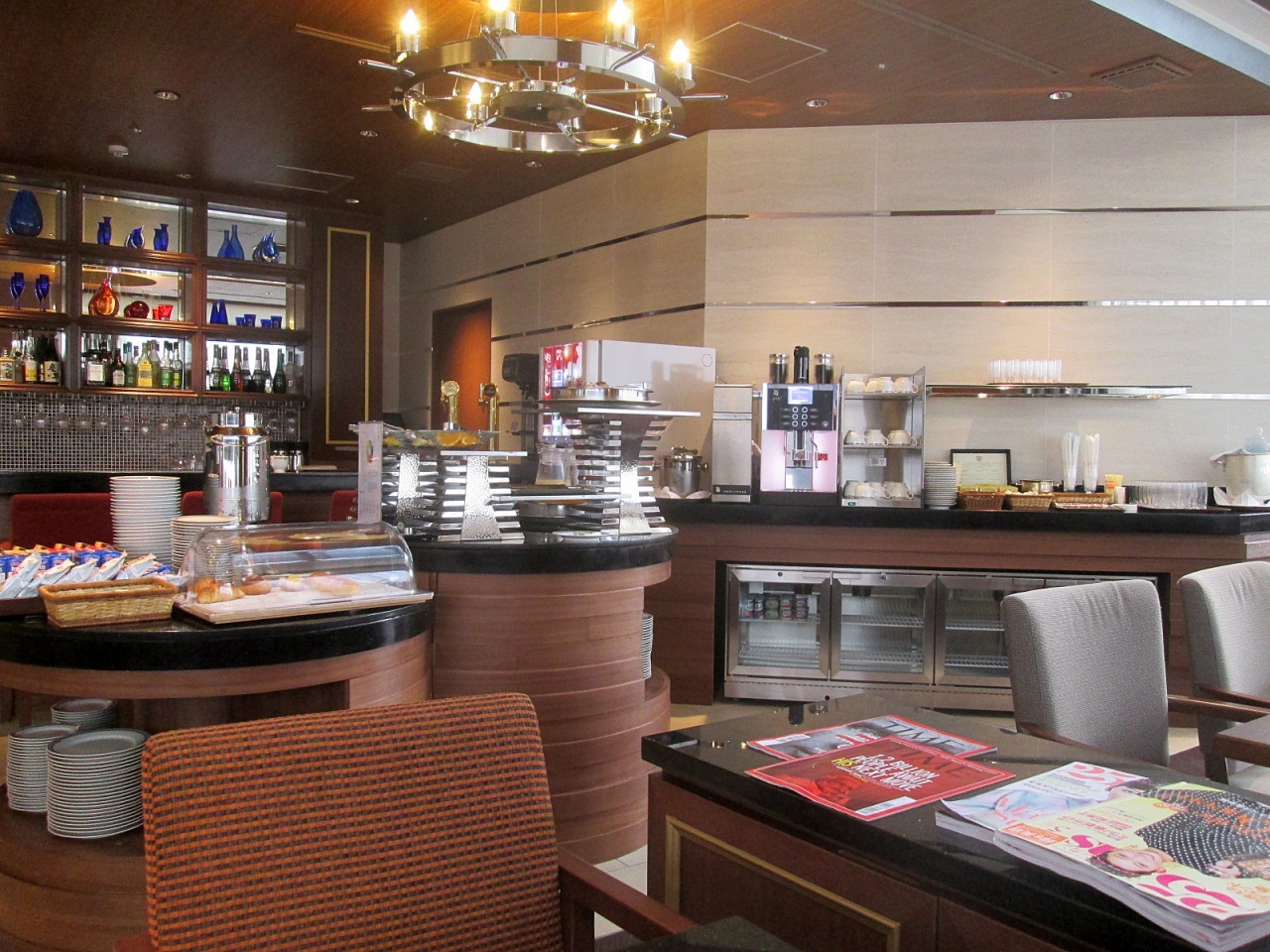 このホテル、シーズンや曜日による料金差が大変大きいのですが、今回は1部屋10400円でしたし、グランデ・スイートにアサインされましたので、費用対効果は抜群でした。今回の目的は、かつて2階ロビーの一角にあった「ベルベディア・ラウンジ」を改装し、5月2日に新しくオープンしたクラブラウンジを訪れることです。それまで11階にあったクラブラウンジの客席はあまりに少なく、とりわけイブニングカクテル・サービスの時間帯には、空席待ちのお客さんリストが作成されるほどでした。ホテル側資料によると、従来のラウンジが180平米だったのに対して新ラウンジは237平米、客席も従来のラウンジが34席だったのに対して新ラウンジは95席ということでしたので、「少しはゆっくりとお酒をいただけるかな」と、少し期待してイブニングカクテル・サービスの時間帯に訪れたのですが…期待は見事に裏切られました。座る場所はありませんし、騒がしく、当然のようにカナッペ類も瞬殺でした(笑)。かつては15時~21時で提供されていたビール・ワイン17時~19時のイブニングカクテル・サービスの時間帯のみになっており、使い勝手も悪くなったかもしれません。「ワインを2・3杯いただいてから食事に…」と思っていたのですが、そうした使い方はできませんね。良かった点は、コンチネンタルではありますが、朝食が提供されるようになっていたことです。ライフタイム会員であれば「サミット」でも「グランカフェ」でも朝食をいただけるものの、朝6時過ぎのクラブラウンジにはお客さんがおらず、ゆっくり静かに食事をいただける環境は貴重であると思いました。ちなみに、クラブラウンジは午後10時から子ども不可のバー(有料)になるようです。