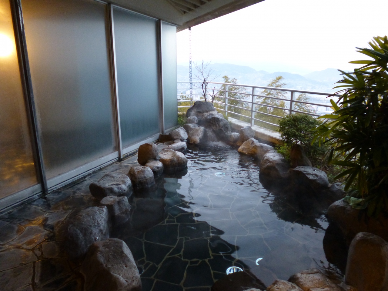 こんな坂道を というような道をどんどん登っていきます。その分眺望は最高です。離れ側の大浴場は温度も低くよくなかったですが、渡り廊下を歩いての別館側の大浴場は露天風呂もあり、それなりに楽しめました。特筆すべきは料理のおいしかったことです。