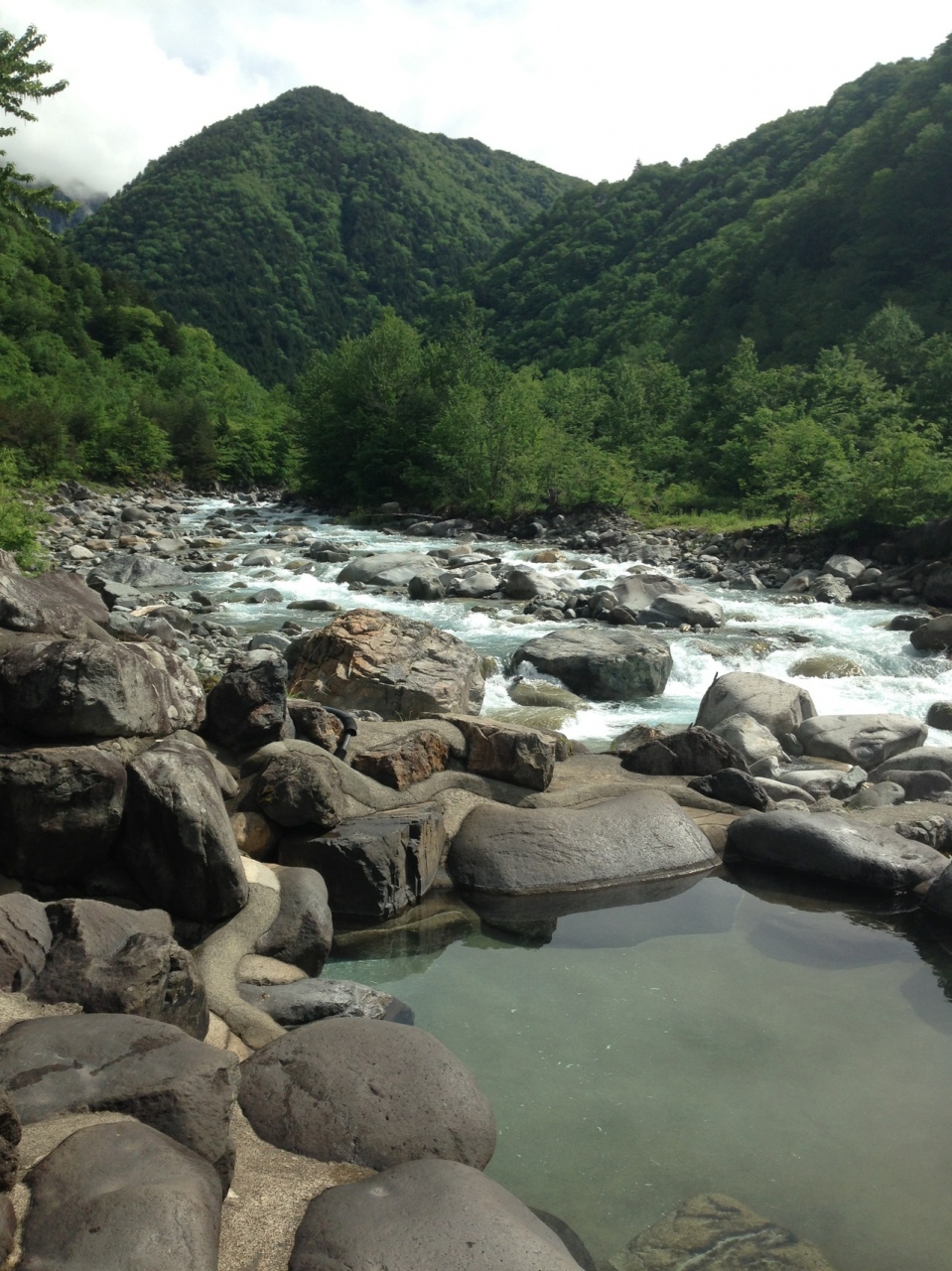 奥飛騨の一番奥、新穂高温泉にある、有名なお宿です。ここの売りはなんといっても、露天風呂。白い湯の花が控えめに浮き、若干硫黄臭のするよい泉質ですが、その景色には誰もが癒されると思います。川と山を見ながら入浴。