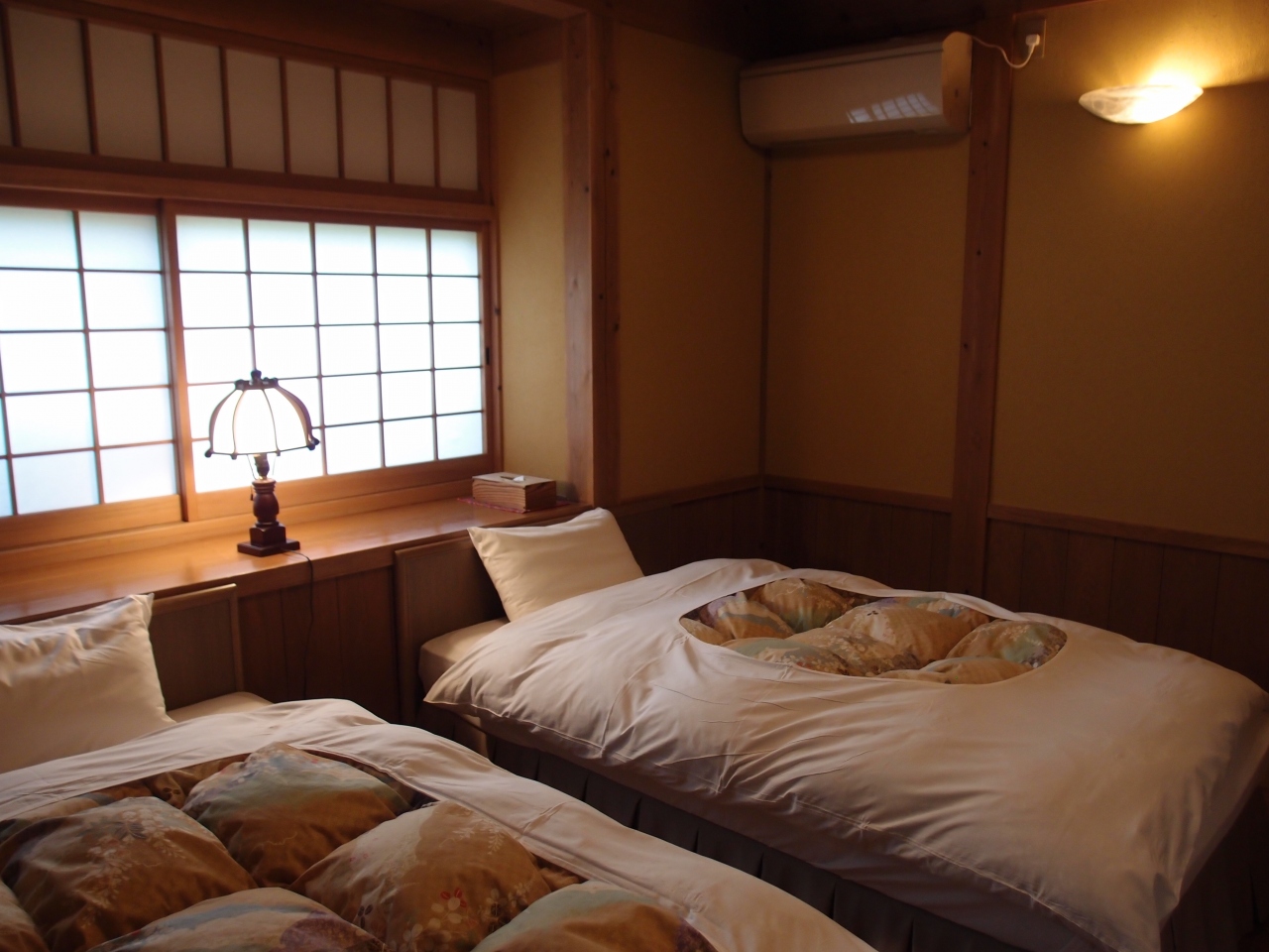 黒川温泉の宿の一つで、渓流に囲まれた自然の中に立地しており、まさに癒しの宿と言っても過言ではないでしょう。部屋は和室のメゾネットをとりました。2階が寝室で1階が露天風呂になっています。温泉はそのほかに大浴場と家族風呂があります。家族風呂の方は、雄大な自然と渓流をゆったり眺めながら入れる露天風呂で、予約制なのでもし空いていたらこちらも予約されることをお勧めします。