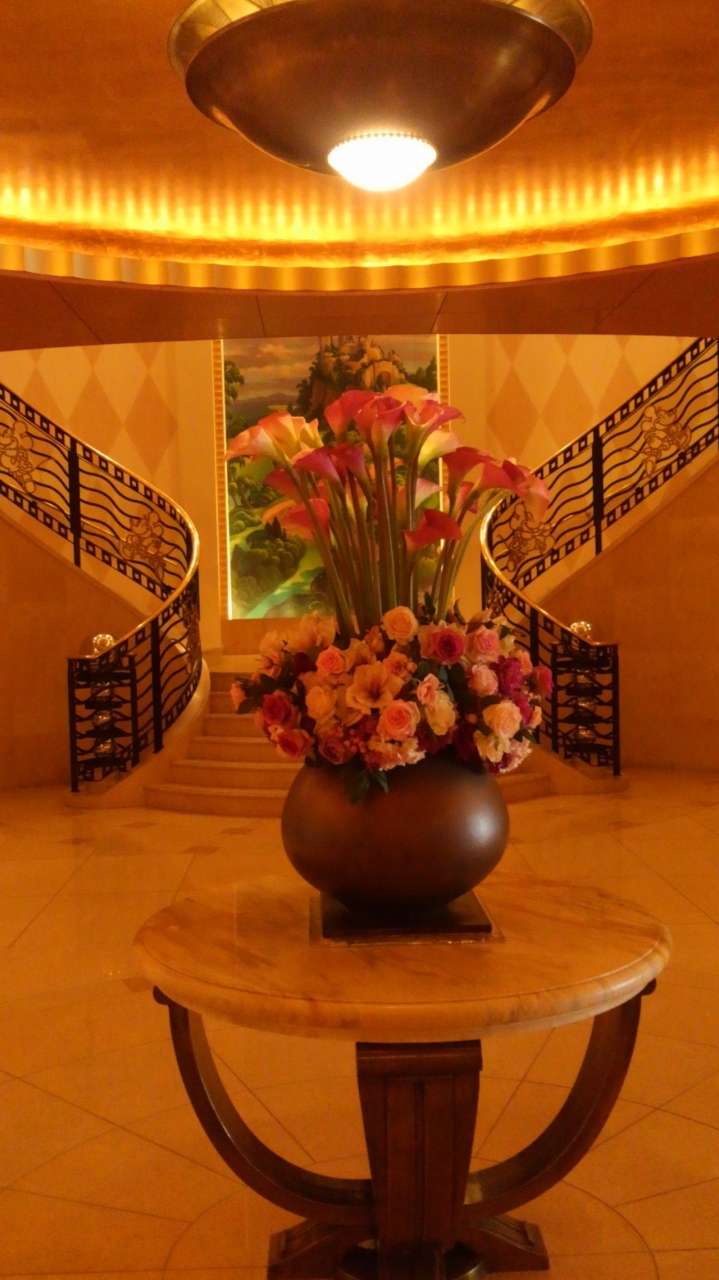ロビーの天井、エレベーターの声、朝のモーニングコールの声。