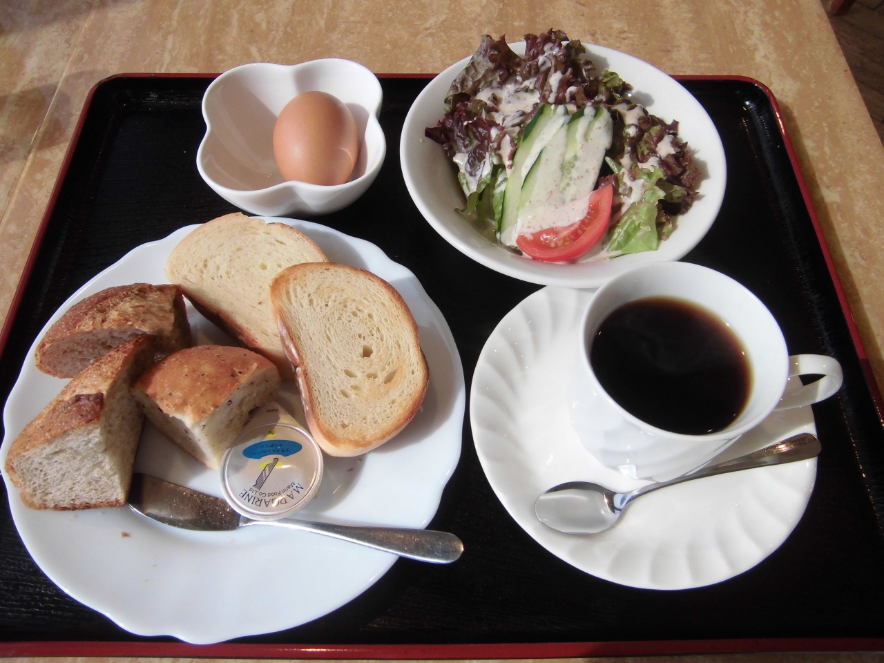 朝食もパンが3種類にサラダ、コーヒー、ゆでたまごが100円と評価出来ます。
