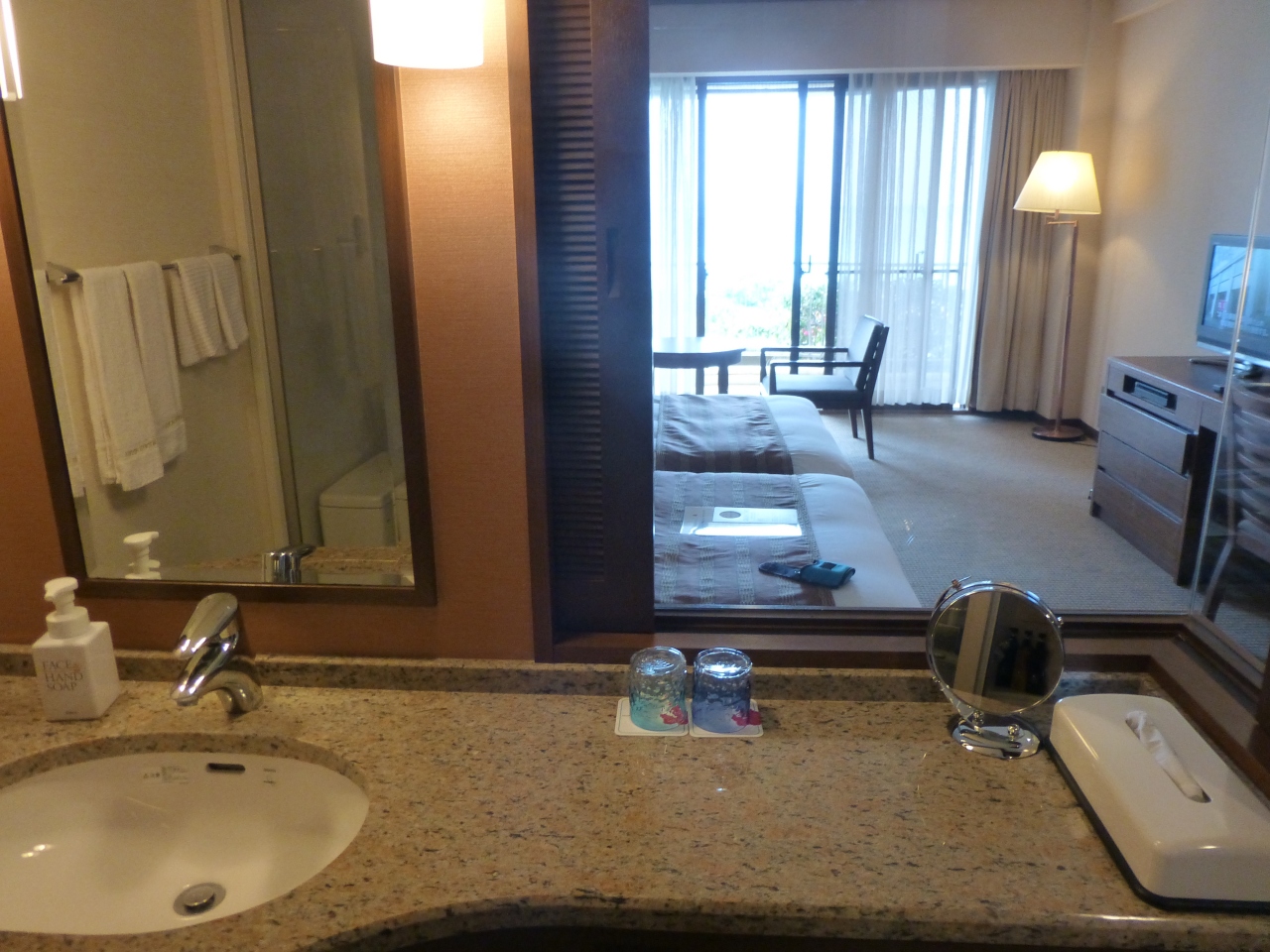 JALパックで利用しました。残念ながらお天気が悪かったのですが、お部屋は広く琉球硝子のグラスだったりして、気持ち良く使えました。