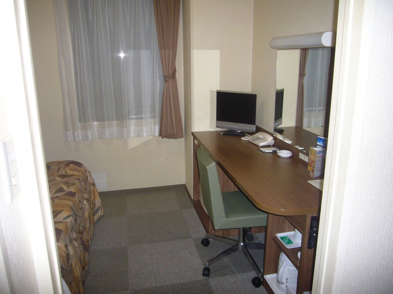 駅前にあるホテルで、便利です。部屋は、他のビジネスホテルより幾分広い感じがして安心します。朝食は、ウインナ・卵などの数種類のバイキングですが、トレーも小さく、ちょっと物足りなく感じます。忙しい出張の朝の栄養補給と考えれば、まずまずです。