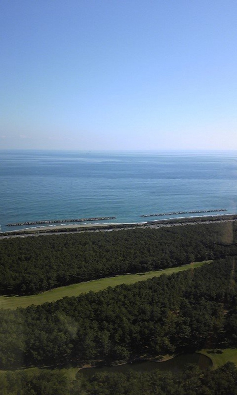 高層階のお部屋からは、ゴルフ場のグリーンと海がみえて、晴れた日は特に絶景です。