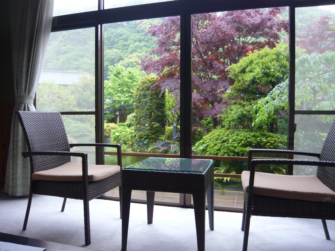 河津の街からは離れていますが、その分自然に囲まれた素敵な宿です。鳥の声や木々の風にそよぐ音が聞こえます。趣の異なるお風呂がたくさんあって、1泊では入りきれない程でした。1階の部屋から鯉にエサをやるのも楽しみでした。