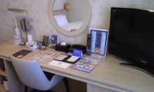 お部屋には、足をマッサージする機械や、そのための靴下が備えてあり