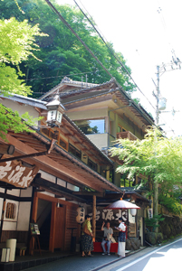 叡山電車鞍馬線 貴船口から送迎もありますが、貴船神社から貴船神社奥宮へ行く途中に料理旅館 右源太さんがあり、5月1日~9月下旬までは川床料理も楽しめます。