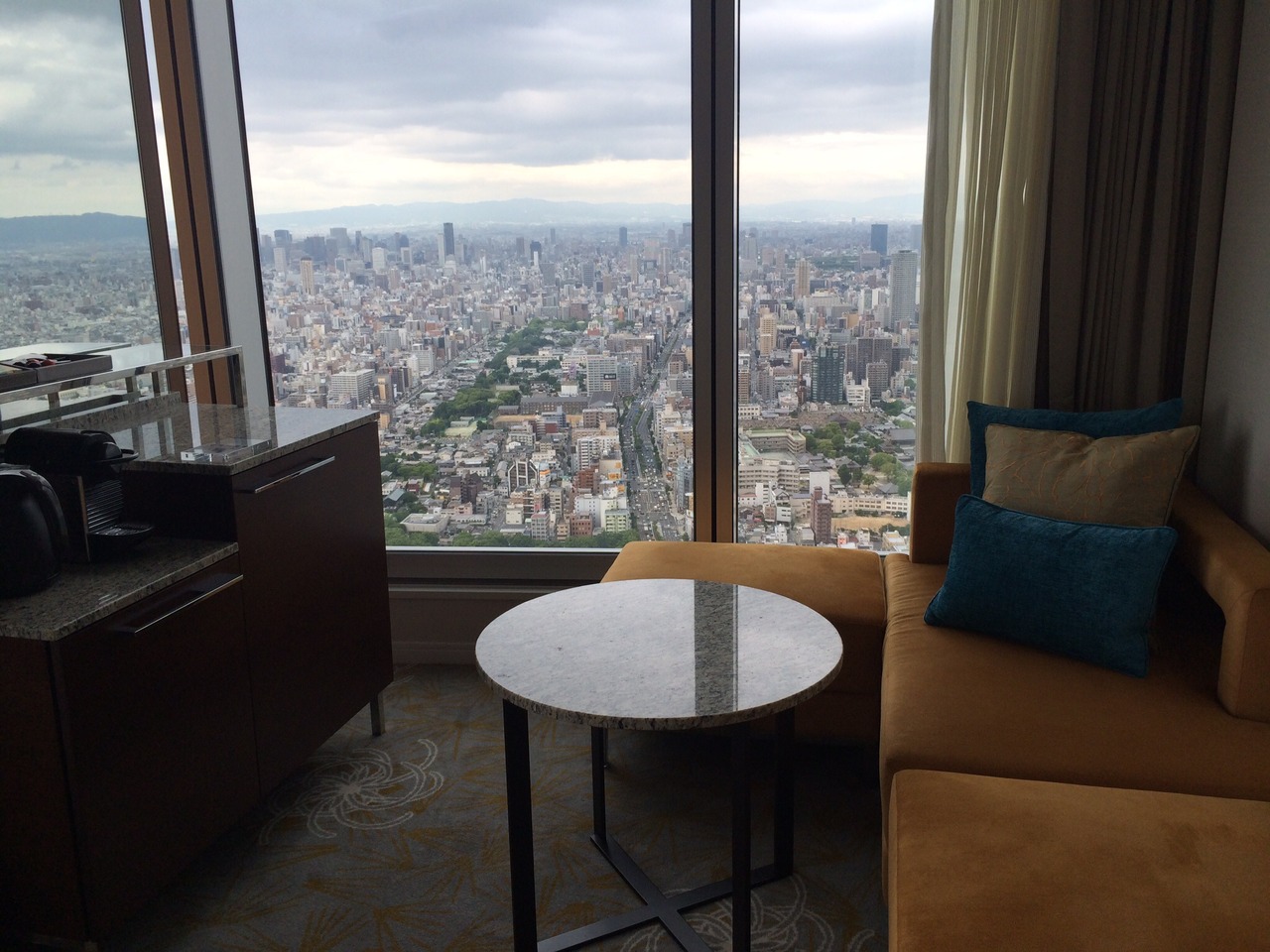 44階のプレミアムコーナーツインに宿泊しました。お部屋は広く、とにかく絶景です!コーナーなので、2方向の景色が見られ、夜はまさに宝石箱をひっくり返したような夜景が楽しめます。57階にあるレストランで夕食をいただきましたが、ここでも素晴らしい夜景でした。食事は美味しかったのですが、一品ずつ出てくるのがかなり遅く、そこがマイナス点です。アクセスも新大阪駅や梅田から地下鉄一本で行けて便利です。非日常の世界に浸って、のんびりできて最高です。